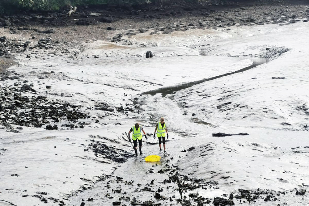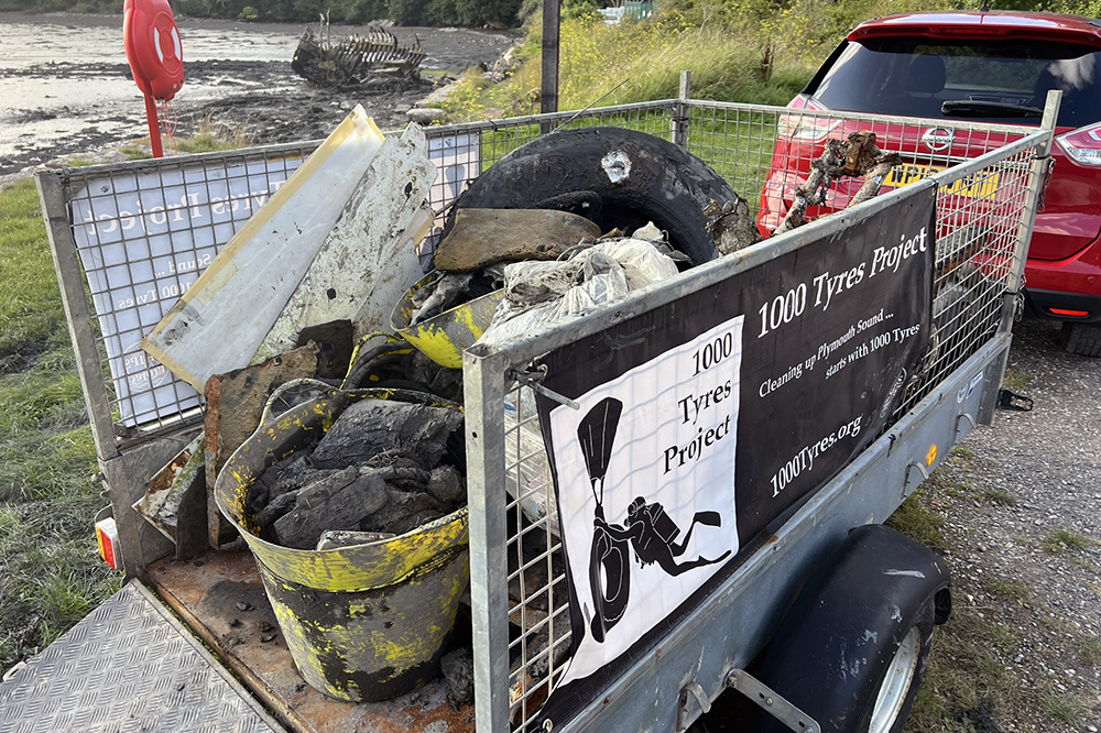 Clearing up more rubbish from the east end of Hooe Lake with the help of our willing volunteers.