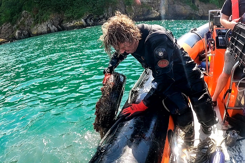 We were joined by Mark Parry from the Ocean Conservation Trust on this dive so we took the opportunity to investigate the restored seagrass beds in Jennycliff Bay and carefully clean up the marine litter that could be removed. The divers investigated several targets found previously using a Solstice MAS sonar and recovered 4 tyres and one large lobster pot.
