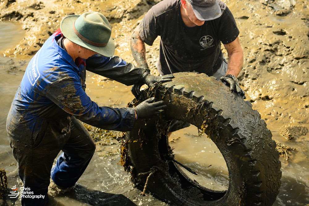 The 1000 Tyres team removed tons of rubbish from Pomphlett Creek in April 2021. Photographs courtesy of Chris Parkes Photography .
