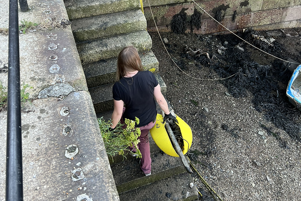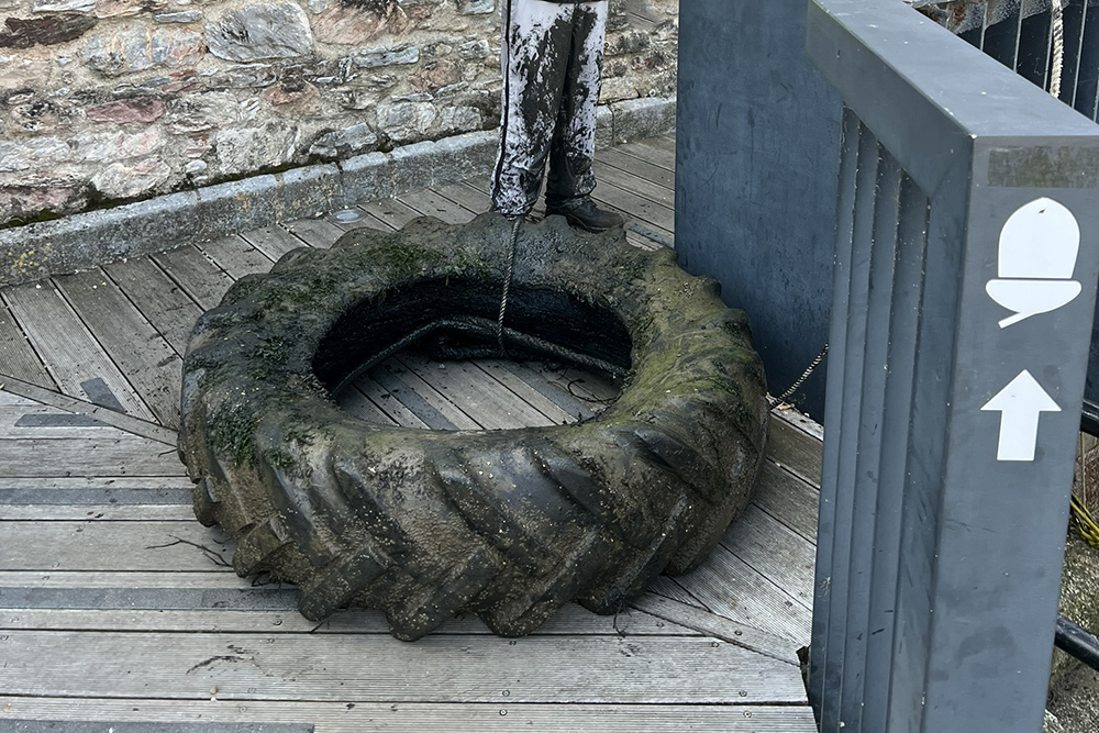 A return to Stonehouse Beach to clear up more rubbish with the help of our willing volunteers, this time including the recovery of a huge tyre.