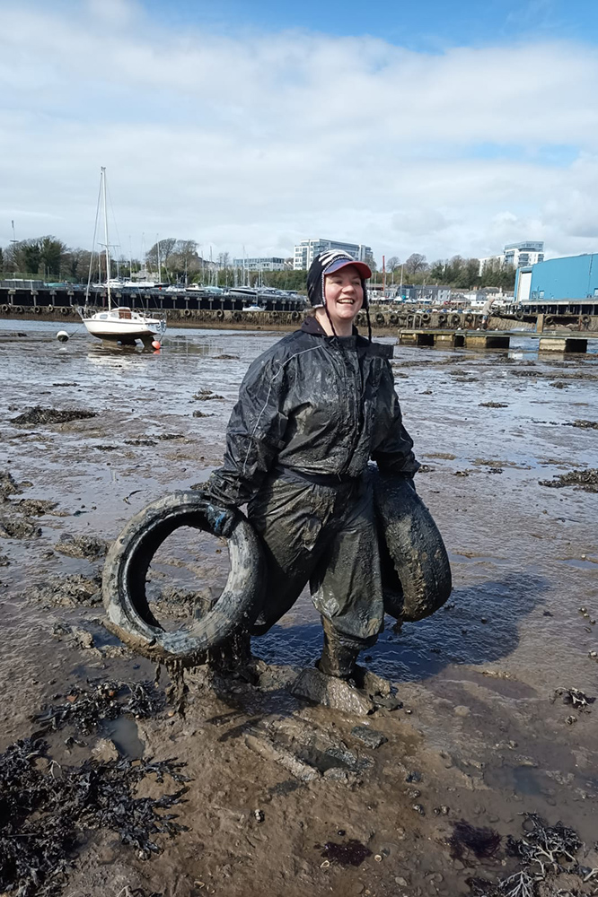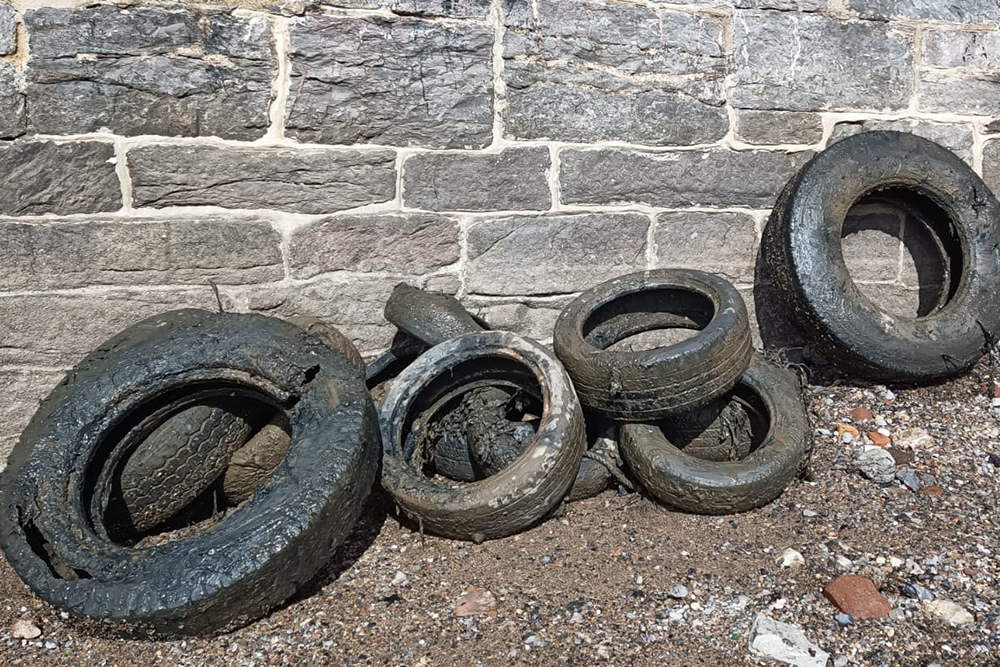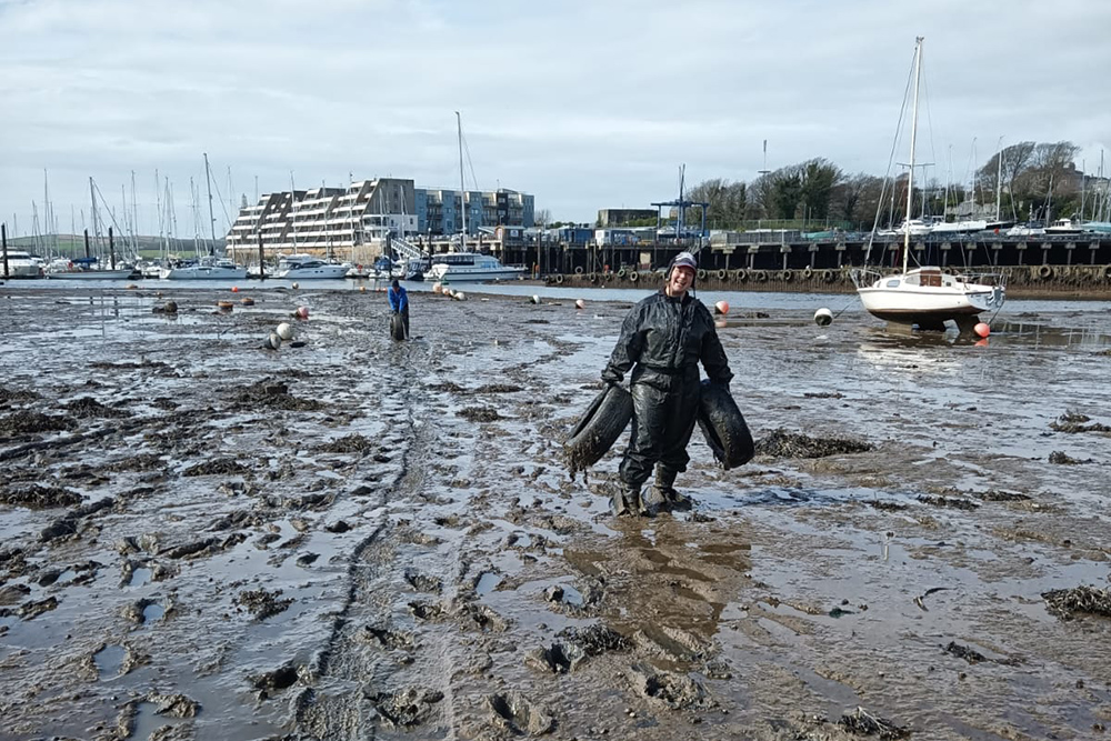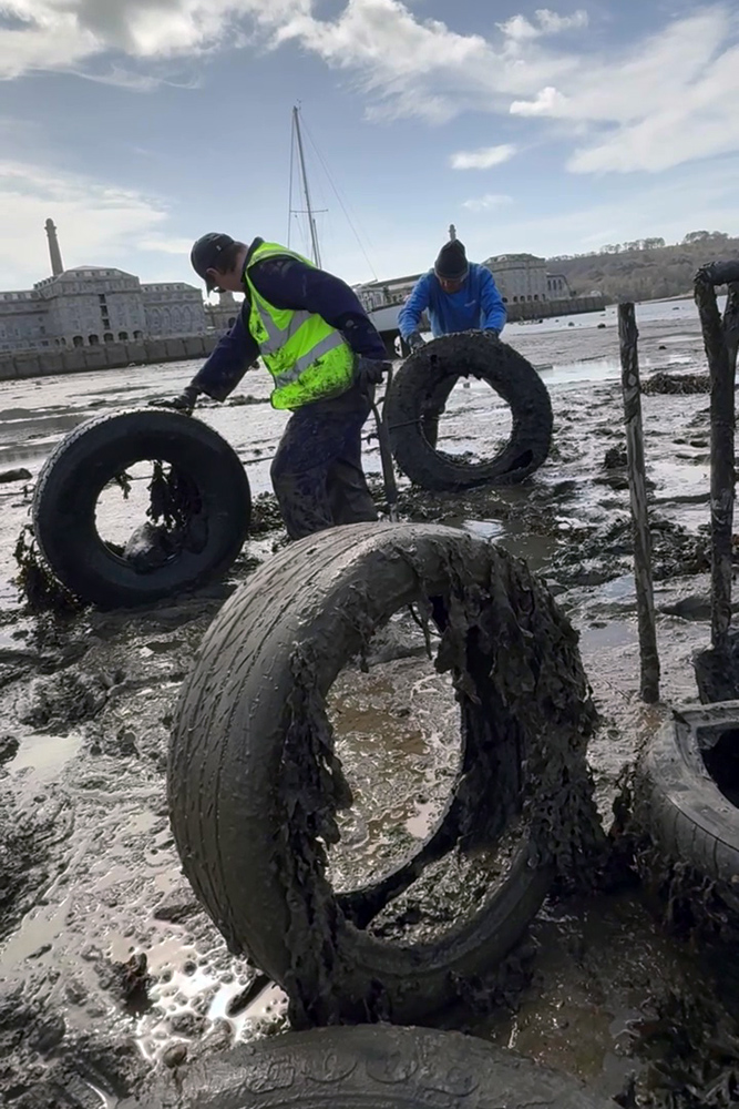 A return to Stonehouse Beach at a low sping tide to get a load of tyres out in the mud. Then a second trip to Barne Barton to recover tyres from the foreshore collected up by the Clean Our Patch team.
