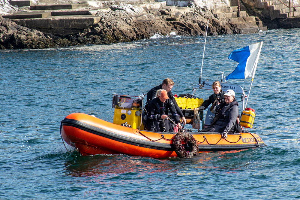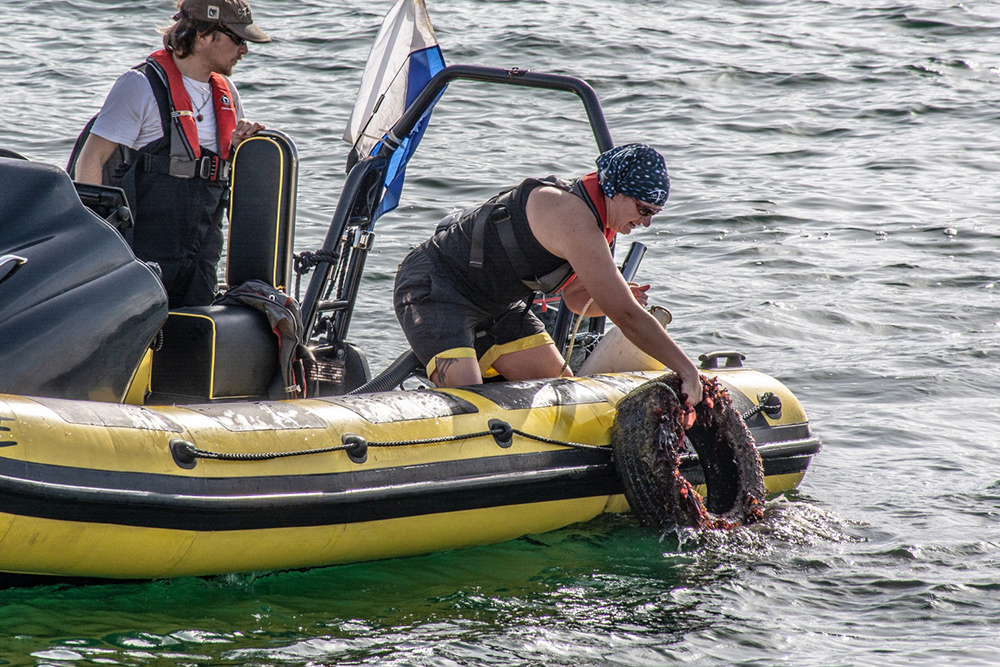 The 1000 Tyres team organised an underwater clean up in October 2023 and recovered 15 tyres and other rubbish, 540kg of rubbish removed from the sea.