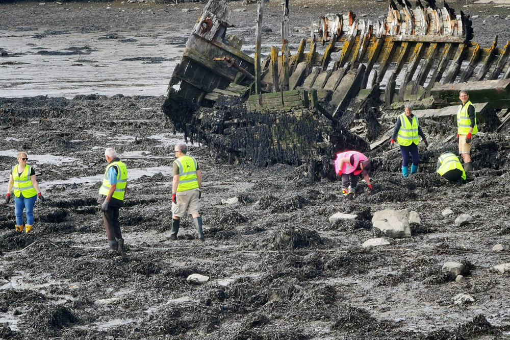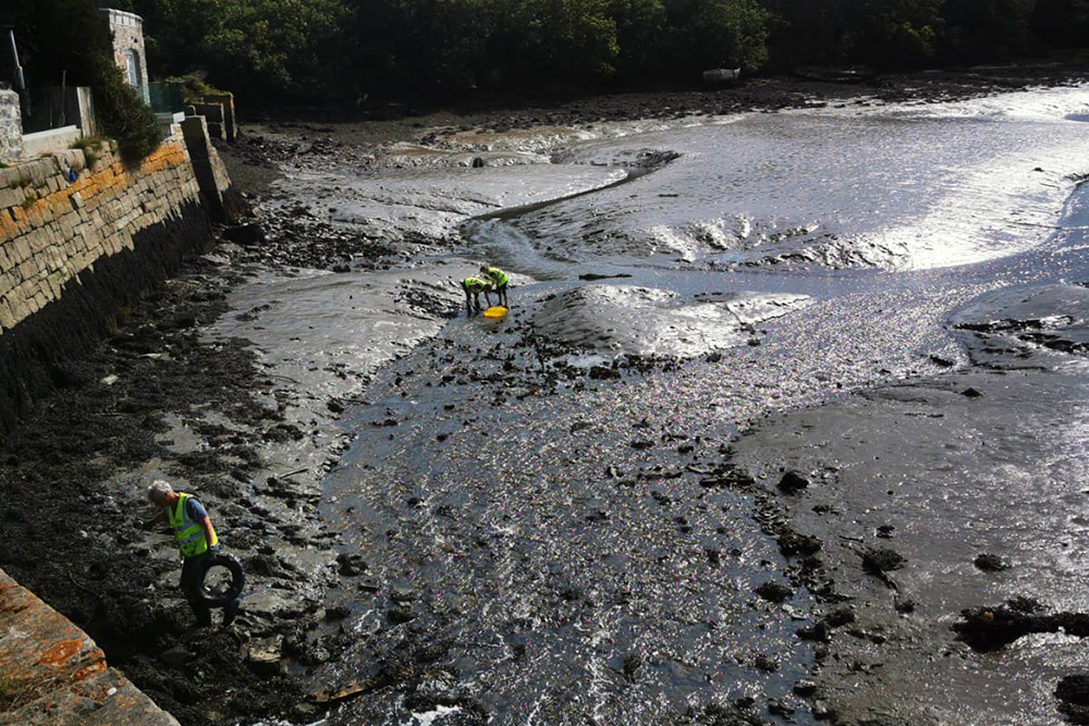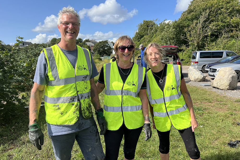 Clearing up more rubbish from the east end of Hooe Lake with the help of our willing volunteers.
