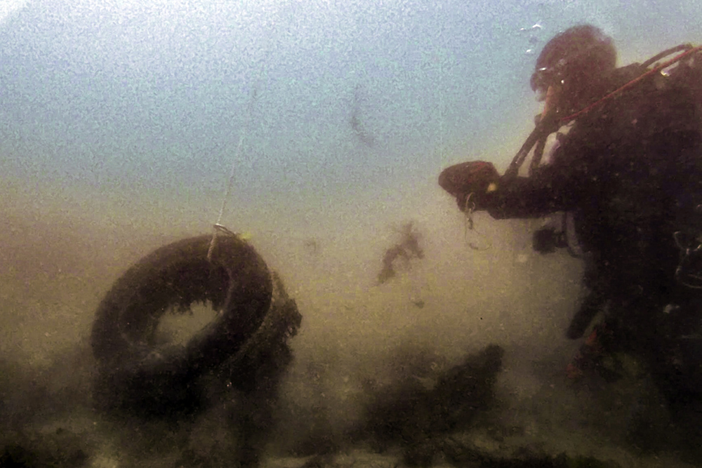 We were joined by Mark Parry from the Ocean Conservation Trust on this dive so we took the opportunity to investigate the restored seagrass beds in Jennycliff Bay and carefully clean up the marine litter that could be removed. The divers investigated several targets found previously using a Solstice MAS sonar and recovered 4 tyres and one large lobster pot.