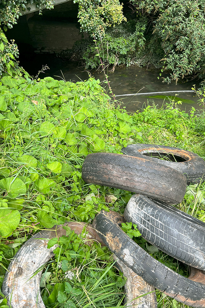 These tyres were recovered from the river by volunteers from Clean Our Patch and were disposed of by us.