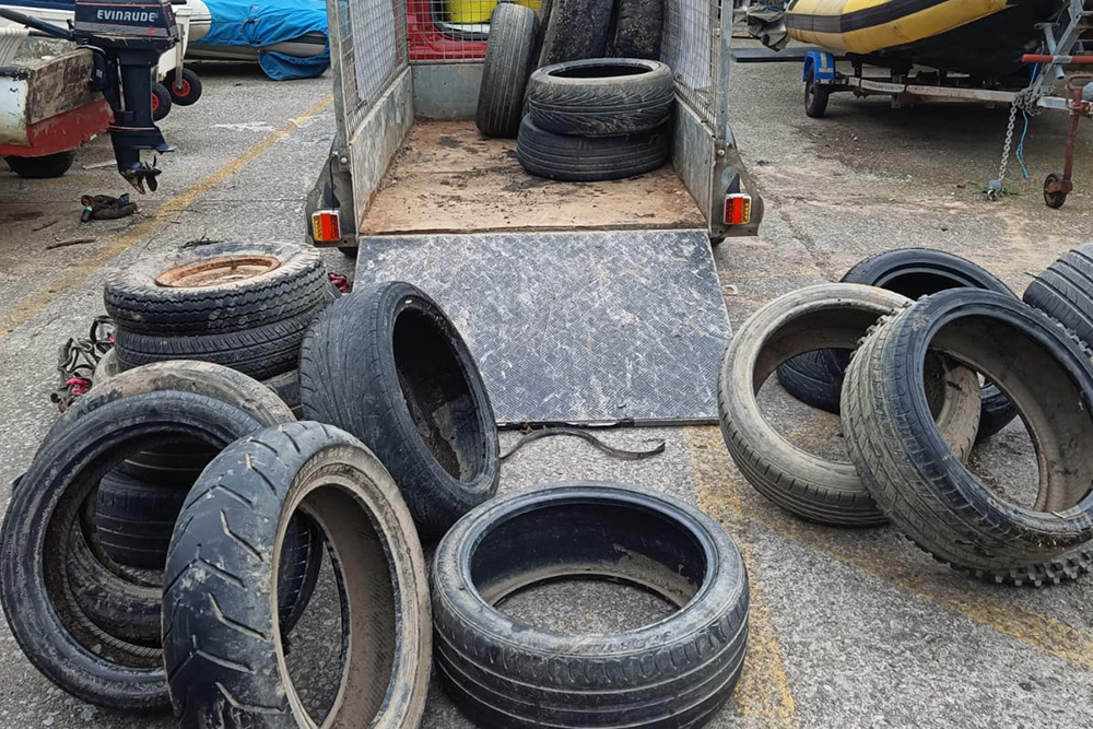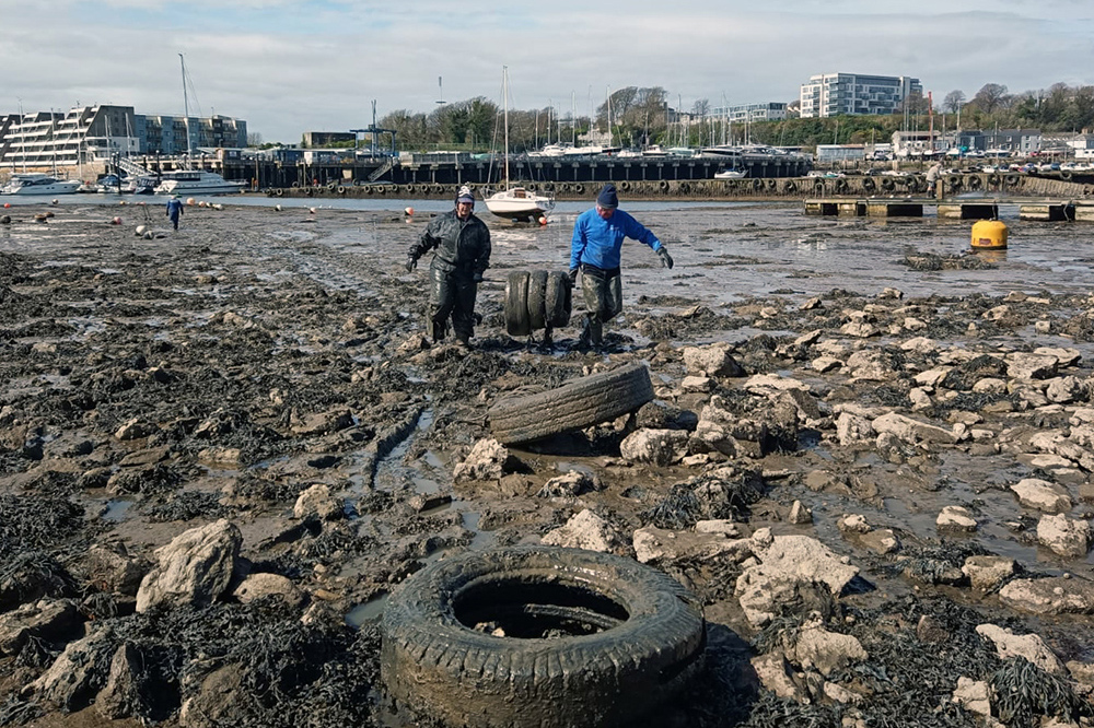 A return to Stonehouse Beach at a low sping tide to get a load of tyres out in the mud. Then a second trip to Barne Barton to recover tyres from the foreshore collected up by the Clean Our Patch team.