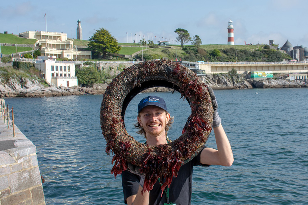 The 1000 Tyres team organised an underwater clean up in October 2023 and recovered 15 tyres and other rubbish, 540kg of rubbish removed from the sea.