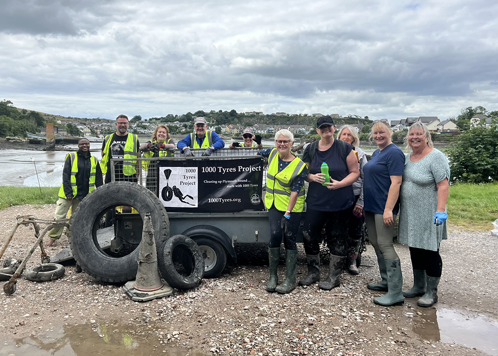The 1000 Tyres project team is removing polluting materials from Plymouth Sound and its estuaries, recovering tyres, plastics, and other rubbish from the foreshore and underwater.